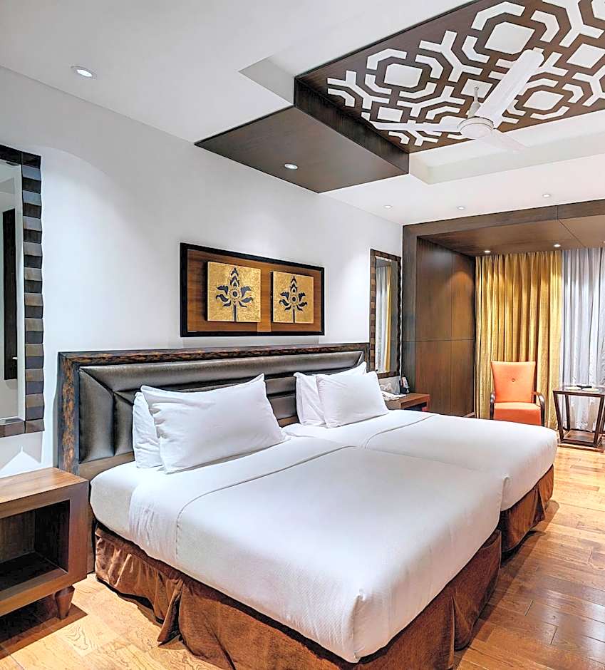 Indulge in comfort with a spacious Deluxe Double or Twin Room, featuring two twin beds and one queen size bed in a 366 sqft area. Enjoy a relaxing bath in the bathtub and unwind in a private bathroom with free toiletries.
